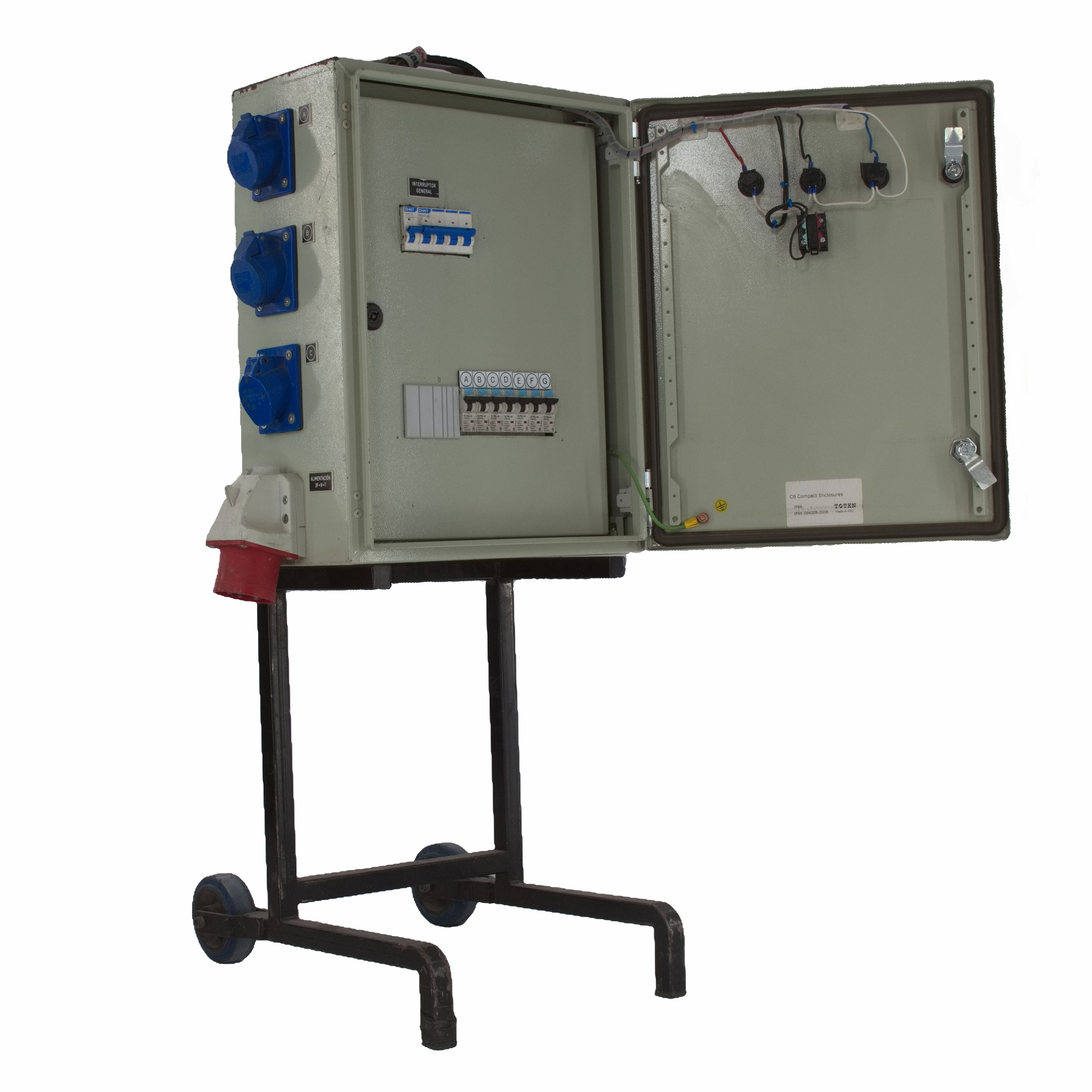 Tablero 16A. Monofásico Plastico, volante, IP 65. Con Botón de pánico IP 65